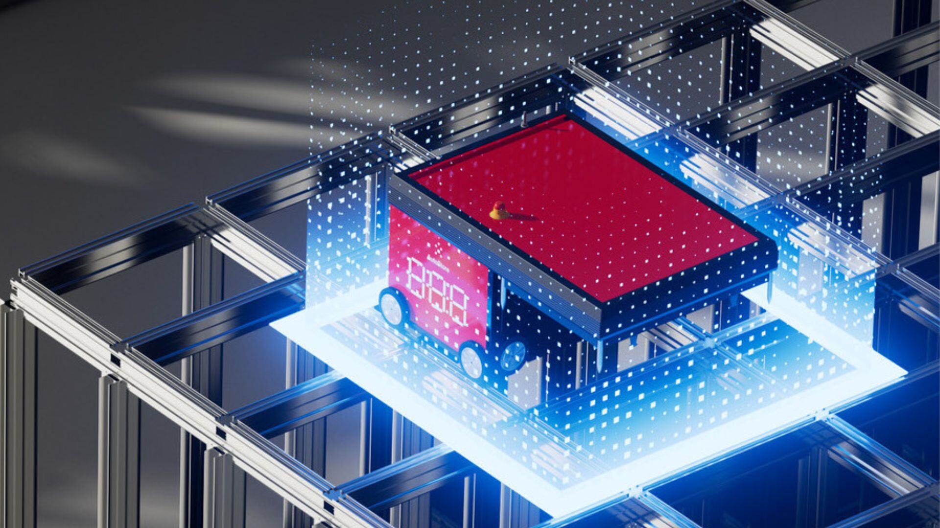 Producten worden opgeslagen in gestapelde bakken binnen het dichte aluminium raster. Wanneer een product nodig is om een bestelling uit te voeren, waarschuwen de systeemsoftware en de besturing een robot om de bak met het artikel te vinden.